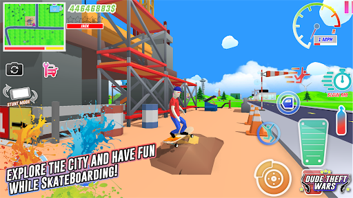 Free roam around the city, drive cars & do ragdoll stunts in the city & earn cash & enjoy sandbox games. Roam around the free dude town playing many mini games, dancing or taking selfies with other dudes.
