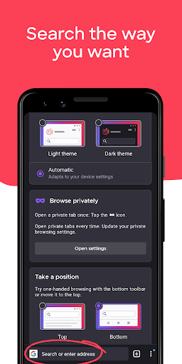 • Turn on private browser mode to use your choice of private search engine results worry-free.