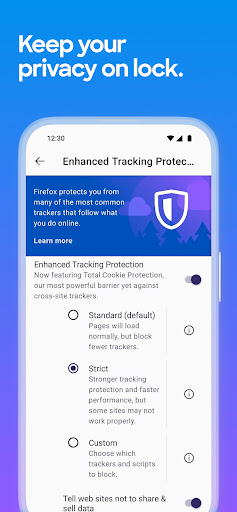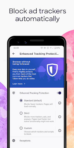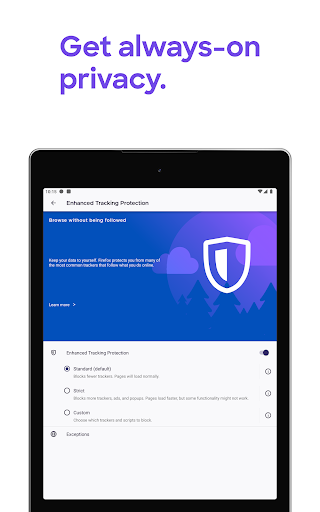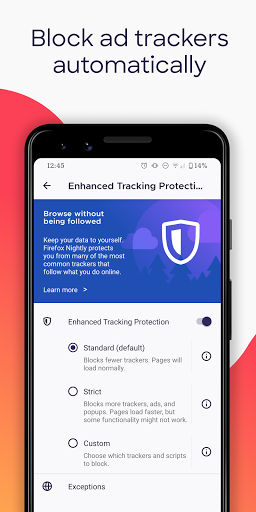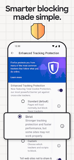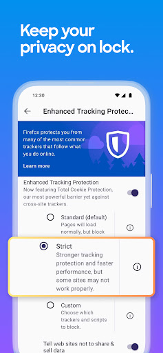 • Enhanced tracking protection — Choose the “strict” setting as an incognito browser and get even more privacy protections with an ad blocker.