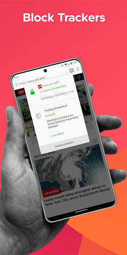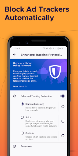 Firefox Browser for Android is automatically private and incredibly fast. Thousands of online trackers are following you every day, collecting information about where you go online and slowing down your speed. Firefox blocks over 2000 of these trackers by default and there are ad blocker add-ons available if you want to customize your browser even more. With Firefox, you’ll get the security you deserve and the speed you need in a private, mobile browser.