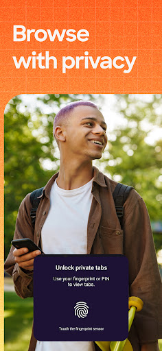 When you want extra privacy, private browsing mode doesn't save your history, searches, or cookies. Private tabs lock automatically when you navigate away and require your fingerprint, PIN, or device security to unlock—helping keep what you're doing private if someone else uses your phone.