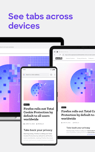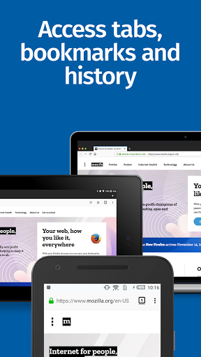 ✔ Sync across devices – Pick up where you left off with synced tabs, bookmarks, and passwords when you sign in to your Mozilla account.