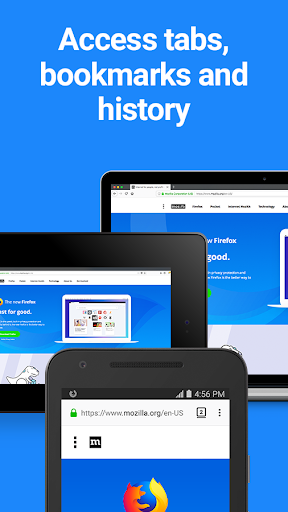 SYNC FIREFOX ACROSS DEVICES - With a Firefox Account, access your history, bookmarks and open tabs from your phone, tablet, desktop or laptop.