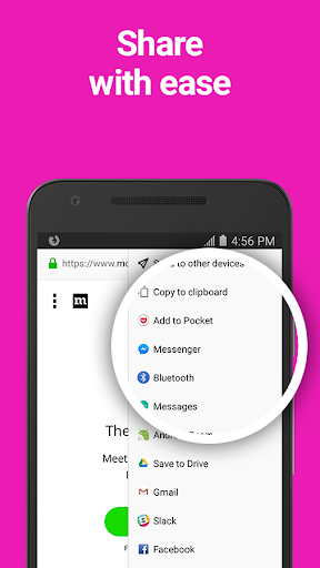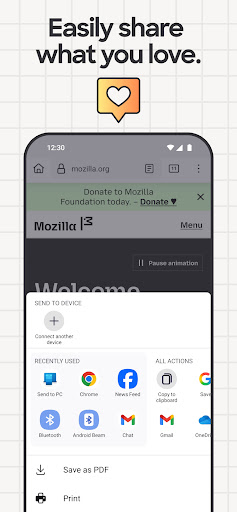 SHARE ANYTHING IN A FEW TAPSThe Firefox web browser makes it easy to share links to web pages or specific items on a page with easy, quick access to your most recently used apps.