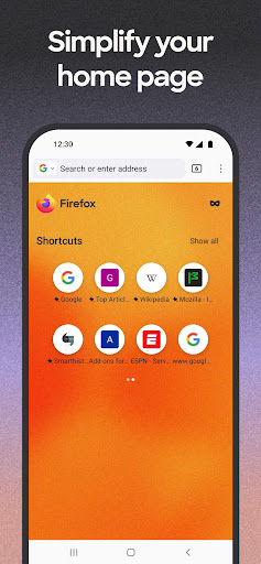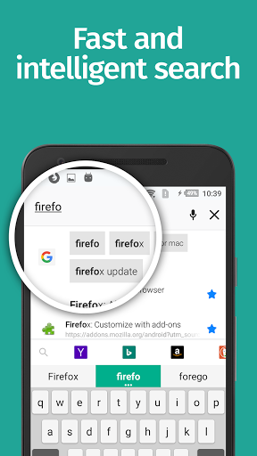 MAKE FIREFOX YOUR OWNMake Firefox your go-to, get-it-done, default browser. And with Firefox widgets, you can jump right to searching the web or using private-browsing mode straight from your phone’s home screen. And Firefox makes password management easy by remembering your passwords across devices.