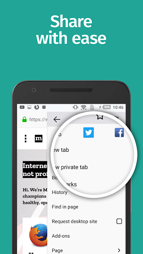 QUICK SHARE- The Firefox web browser makes it easy to share links to web pages or specific items on a page by connecting to your most recently used apps like Facebook, Instagram, Twitter, WhatsApp, Skype and more.