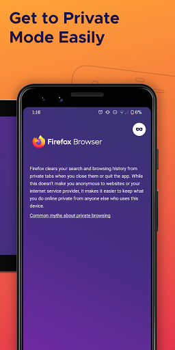 ONE TAP TO PRIVATE MODE Now you can get to Private Browsing Mode with just one tap. And when you close Private Browsing Mode, your browsing history gets automatically erased from your device.