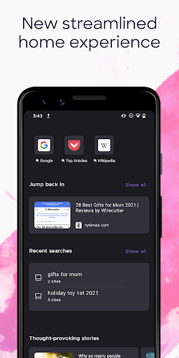 Things are looking different in 2021. The Firefox Android browser is designed to bring you a more modern and calmer web experience on-the-go. Download Now.