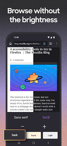 Introducing our latest release of Firefox for Android browser — Firefox Daylight. This version of the Firefox web browser is dramatically redesigned to be faster, easy to use, customizable and private. Firefox browser features Enhanced Tracking Protection on by default blocking thousands of annoying ad trackers and malware — making your experience more secure, and a lot faster too. Firefox is also the only major browser backed by a not-for-profit fighting to give you more openness, transparency and control of your life online. Download the Firefox for Android browser today and keep the internet open for tomorrow.
