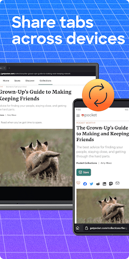 - Send open tabs between mobile and desktop.
