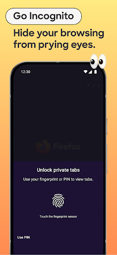 • Hide Private Tabs. Private browsing mode can auto-lock when you leave, and require your face, fingerprint, or PIN to unlock.