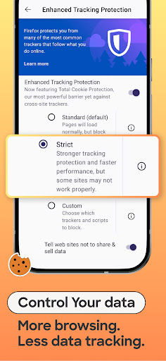 • Enhanced tracking protection — Choose the “strict” setting and get even more privacy protections.