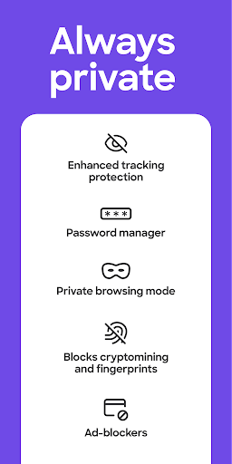 ✔ Private browsing mode – Browse without saving your history, searches, or cookies. Private tabs lock automatically when you step away.