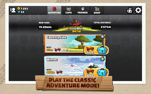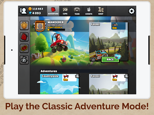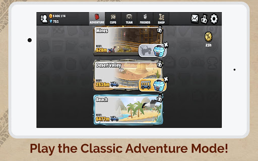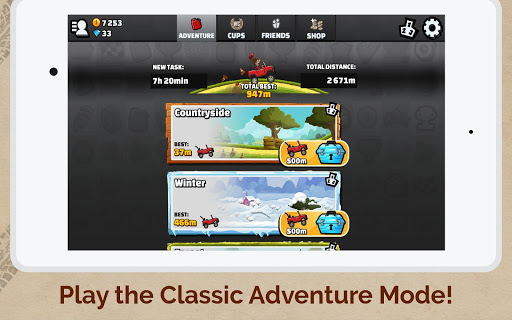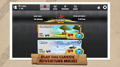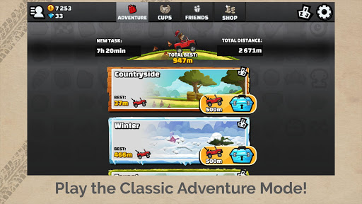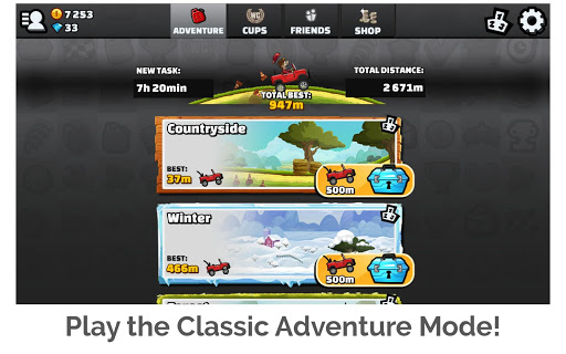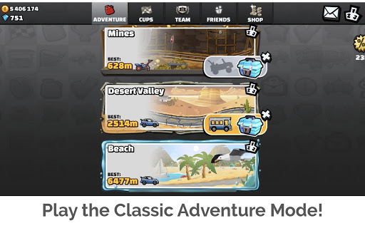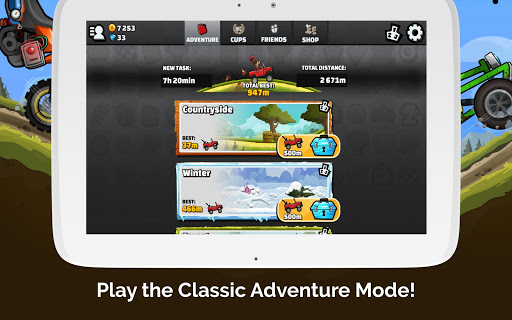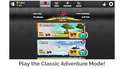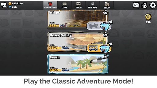 Classic Adventure ModeThe popular up hill adventure mode from Hill Climb Racing 1 also makes it’s return in this sequel! See how far you can drive in this endless race mode.