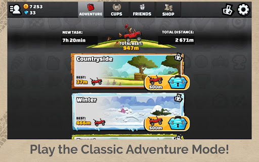 Classic Adventure ModeThe popular up hill adventure mode from Hill Climb Racing 1 also makes its return in this sequel! See how far you can drive in this endless race mode and conquer those hills!
