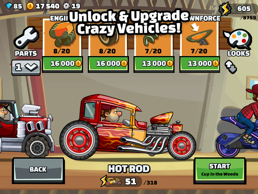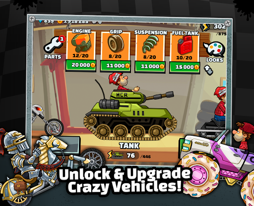 Unlock & Upgrade New Parts!Upgrade your vehicle’s performance and add a host of unique parts to improve your hill racing performance. From adding jump shocks to get more air time or an afterburner which gives you extra power at the cost of more fuel The choice is yours!