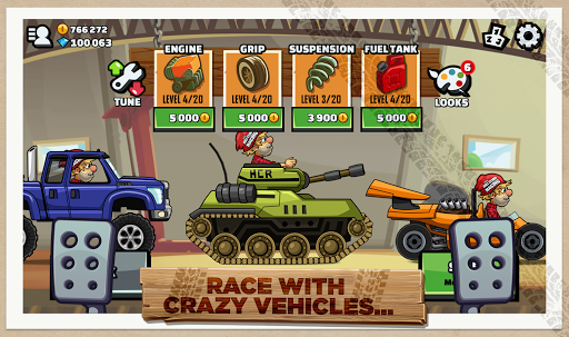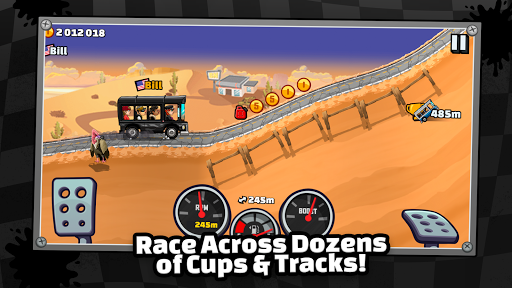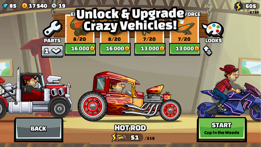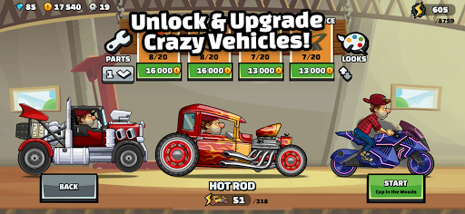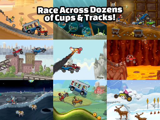 Drive uphill with over 20+ Vehicles - from Cars to Trucks, Bikes and the crazy rotator!Race your way through the HCR2 trophy road and compete in exciting cups driving the vehicle of your choice!