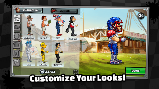Customize Your Car And Character!Earn and unlock a variety of customization options for both your avatar and your garage of vehicles! There are thousands of customization combinations at your fingertips.