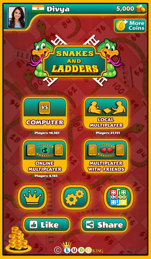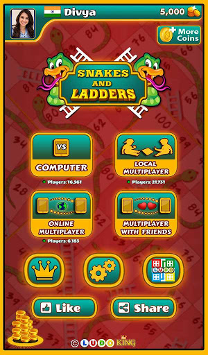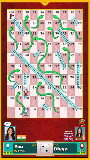 Another nostalgic game similar in structure is Snakes and Ladders. Like Ludo, you may have played this board game when you were young. Ludo King now incorporates this classic game as a whole new level. The objective of the game is simple: you start on 1 and you have to be the first one to make it to 100. However, you can only move the same number of tiles as the number you roll on a die. As the name suggests, the board is also littered with snakes and ladders. If you land on the same tile as the beginning of a ladder, then you can take the ladder as a shortcut and move on up. A game of ups and down, Snakes and Ladders has been a favorite for generations; and now you can play it too, with Ludo King.