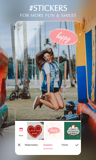 - Add-ons: Customize your pictures by adding frames, text, stickers