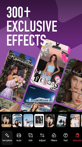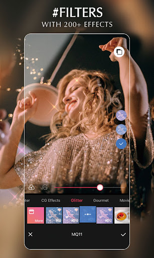 • Diverse effects and beautiful filters for your Instagram, TikTok and Hello videos