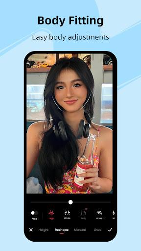 •Body Shape: Want to be curvier, slimmer, more muscular, shorter, or taller? Whatever your beauty preference, do it all with Meitu!
