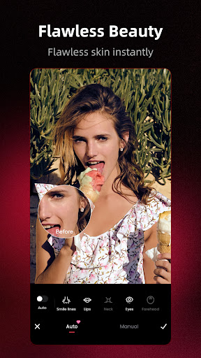 • Instant Beautification: Enhance your appearance with just one tap. Achieve flawless skin, sparkling eyes, a straighter nose, whiter teeth, and more.