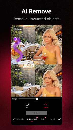 • Portrait Retouch: Adjust your portrait with a variety of effects, including makeup, face, and teeth adjustments.