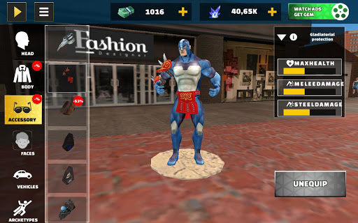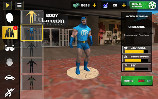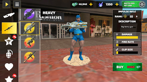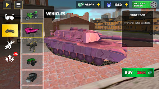 Upgrade your hero arsenal in the shop, where you’ll find a wide range of weapons, from classic guns to futuristic blasters and lasers. Customize your hero’s appearance with a wide choice of gear and accessories. Get new abilities with a variety of vehicles available in the shop, including cars, tanks, SUVs, helicopters, and even a battle mech. These vehicles will provide additional firepower and give you advantages in the fight against crime.