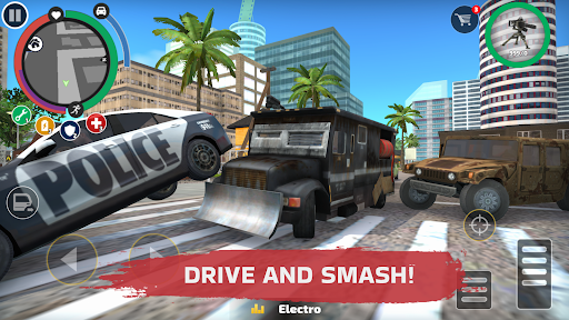 • Fight with gangsters, mafia, corrupted cops, army and other villains