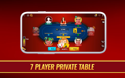 - Private Table: Play online Teen Patti multiplayer on private tables with up to 7 players.
