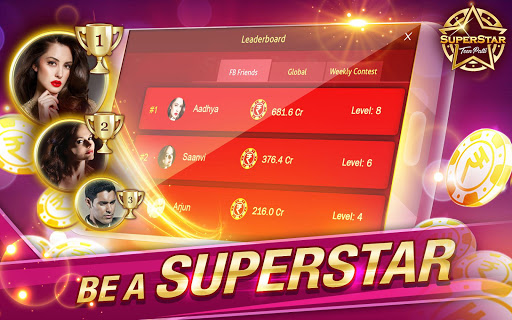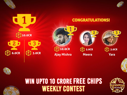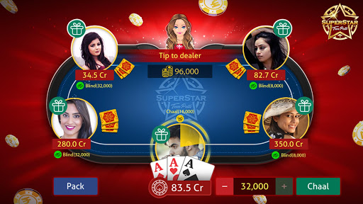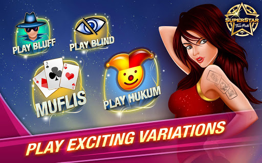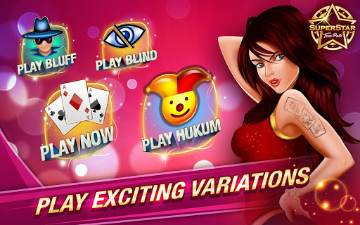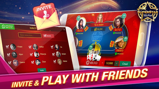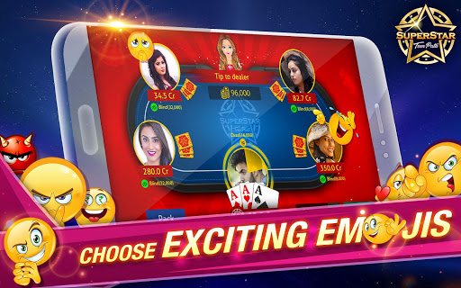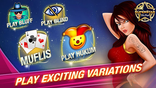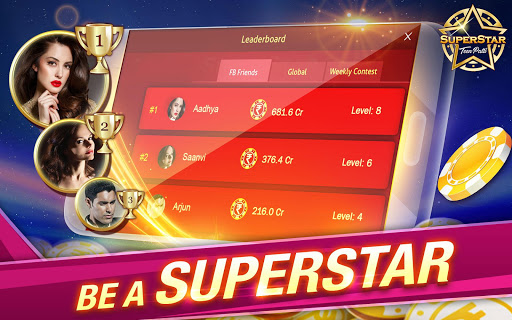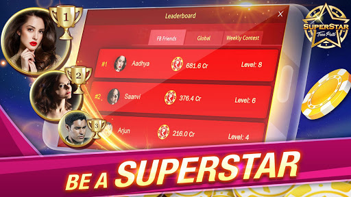 Superstar Teen Patti game, online 3patti Indian poker, is World’s #1 Live Teen Patti game app. Play ultimate Teen Patti & be a 3 Patti, three card poker SUPERSTAR.