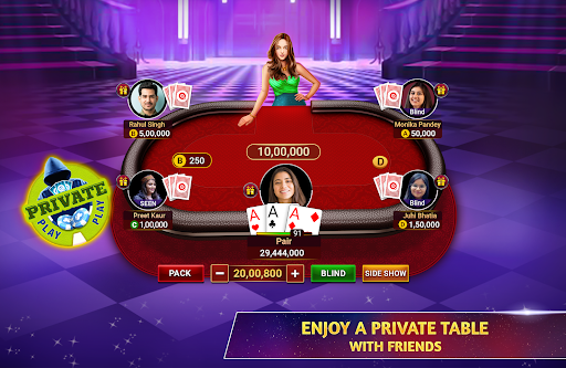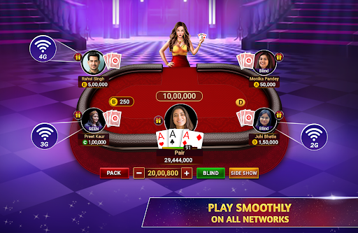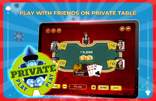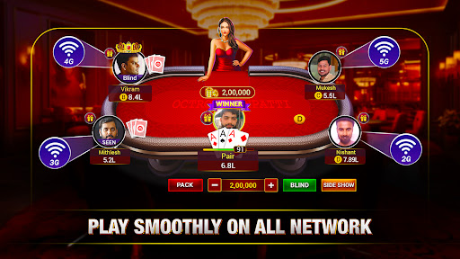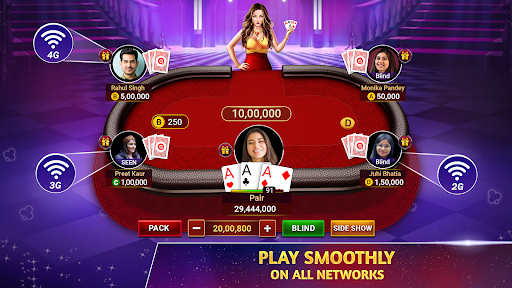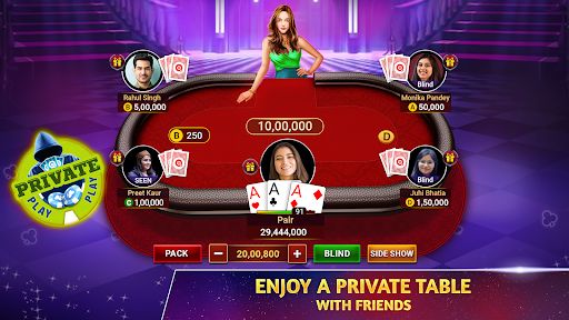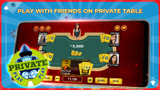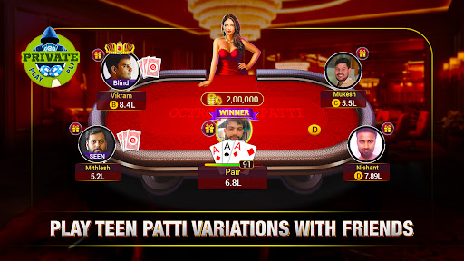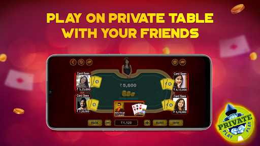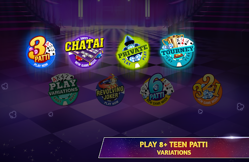 Try out something different than the classic Teen Patti game. Play multiple 3 Patti Game modes - Chatai, Pro Mode, 6 Patti (6 Card Indian Patti), and much more! Join or create your own Teen Patti Private tables to play 3 Patti with friends!
