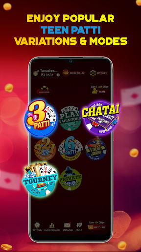 Play multiple Game modes. Chatai, Pro Mode ,6 patti, Public tables, Private Tables ,Variations and many more.