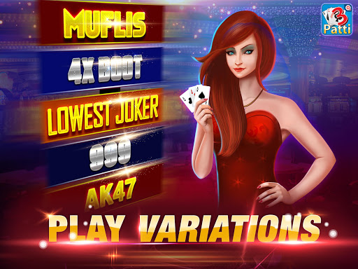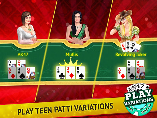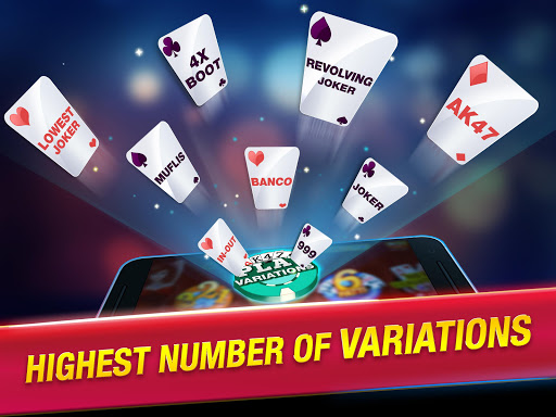VARIATIONS : Try 3Patti variations. Revolving Joker, Lowest Joker, Joker, AK47, 999, Muflis, 4X Boot, Banco, In-Out & much more!