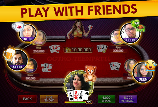 Teen Patti by Octro - India’s own Online 3 Patti Game! Join millions of Real Players. Show off your तीन पत्ती Rummy skills on the largest online 3 Patti game in the World. Play TeenPatti with FRIENDS and family!