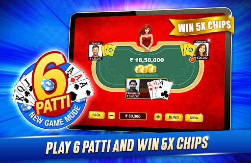 ♣ 6 PATTI : 6 Patti is a tinpatti tournament mode where 15 hands are played between 5 players. Online Teen Patti Winnings are 5 times the stakes.