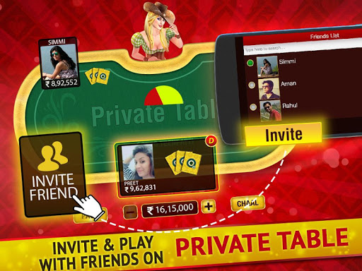 PRIVATE TABLE : Play Teen Patti with your friends. Create your own private table and invite your friends to play on your private table.
